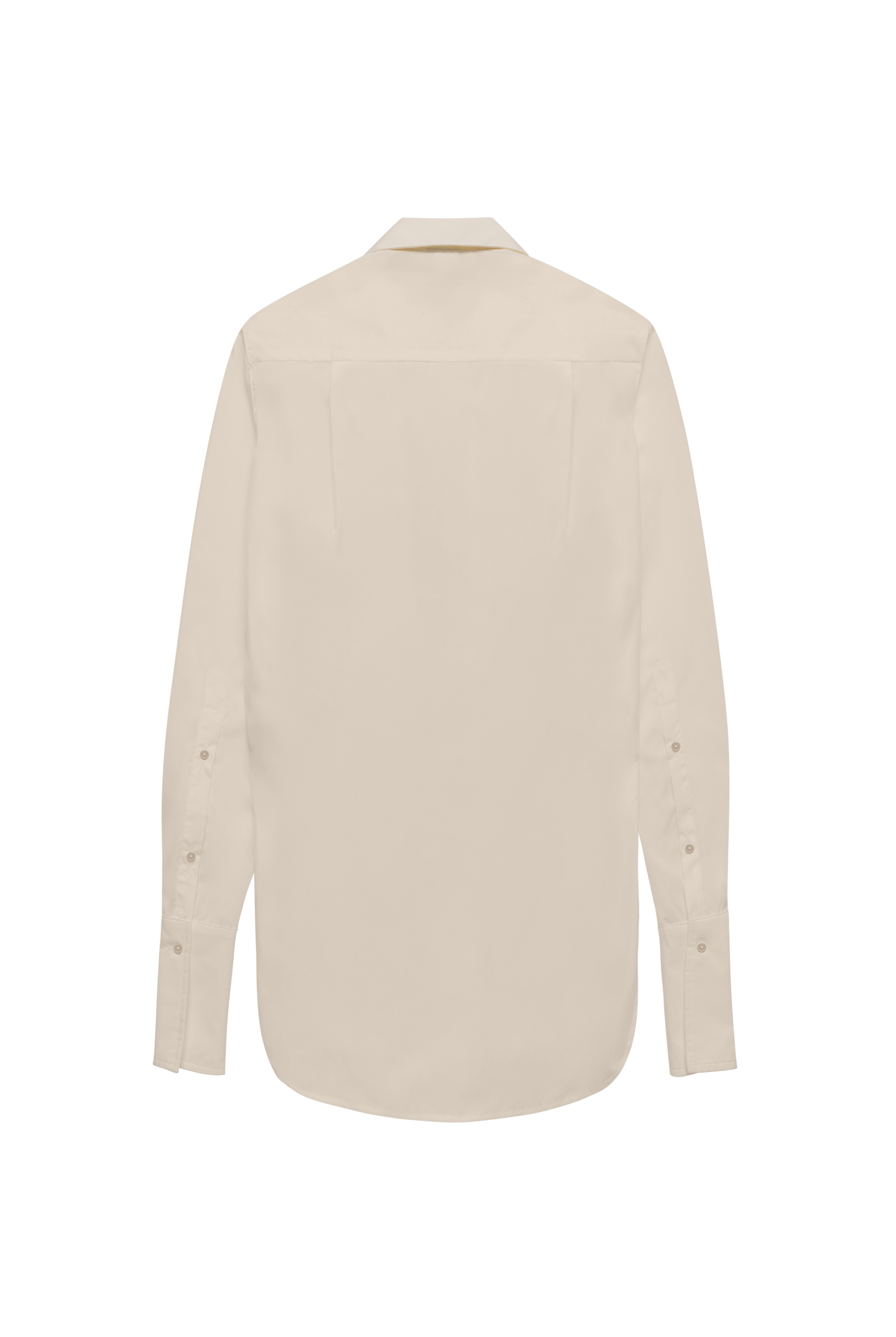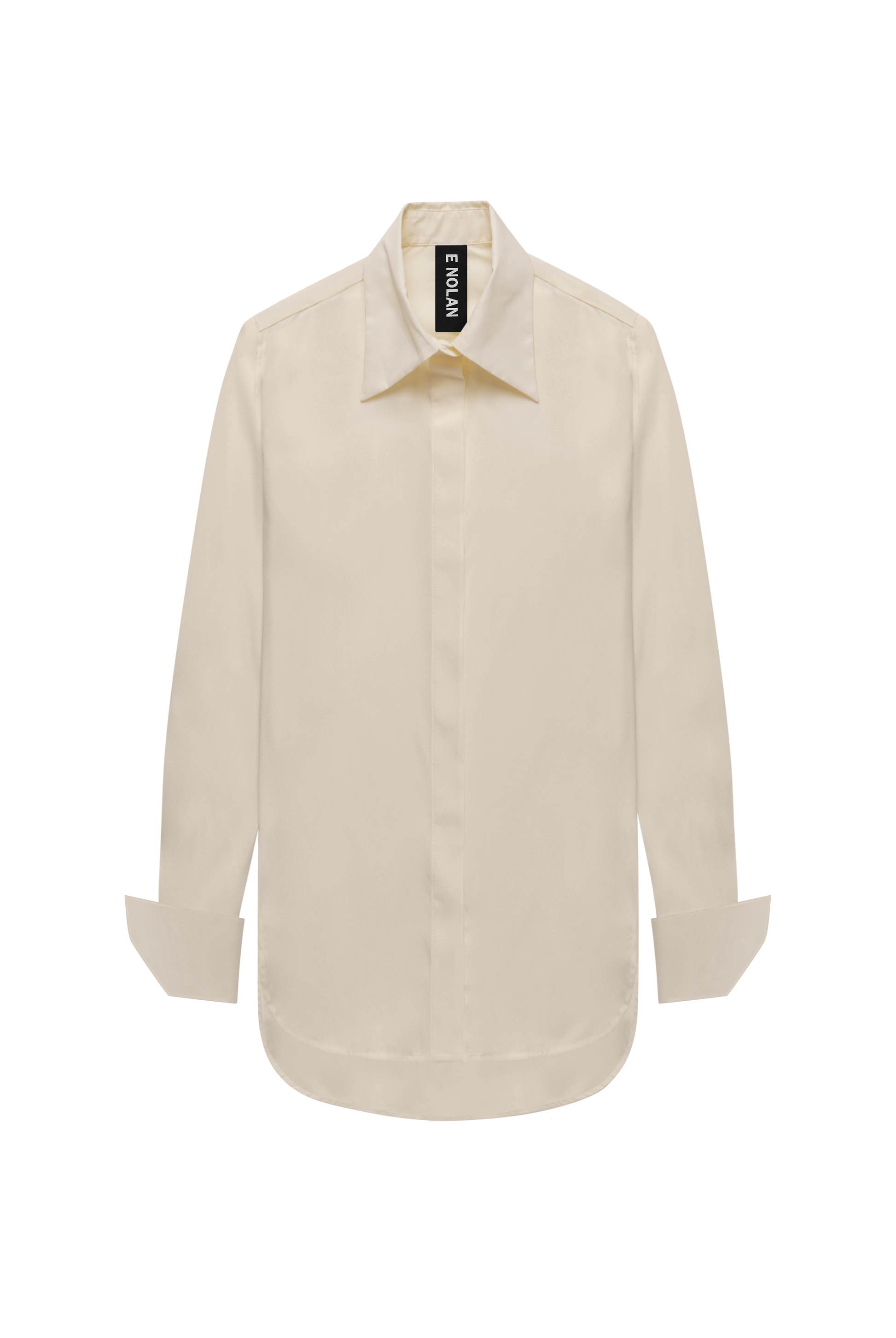 With E Nolan's designs, it's all in the details, and this shirt is no exception – Emily Nolan admits to taking five year to perfect this shirt, driven by customer feedback. Cut from smooth cotton-poplin, it's designed in a neatly tailored silhouette, detailed with a curved hemline and wide, buttoned cuffs. We think this shade of ecru works best with the Galah knitted vest.